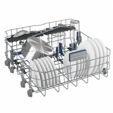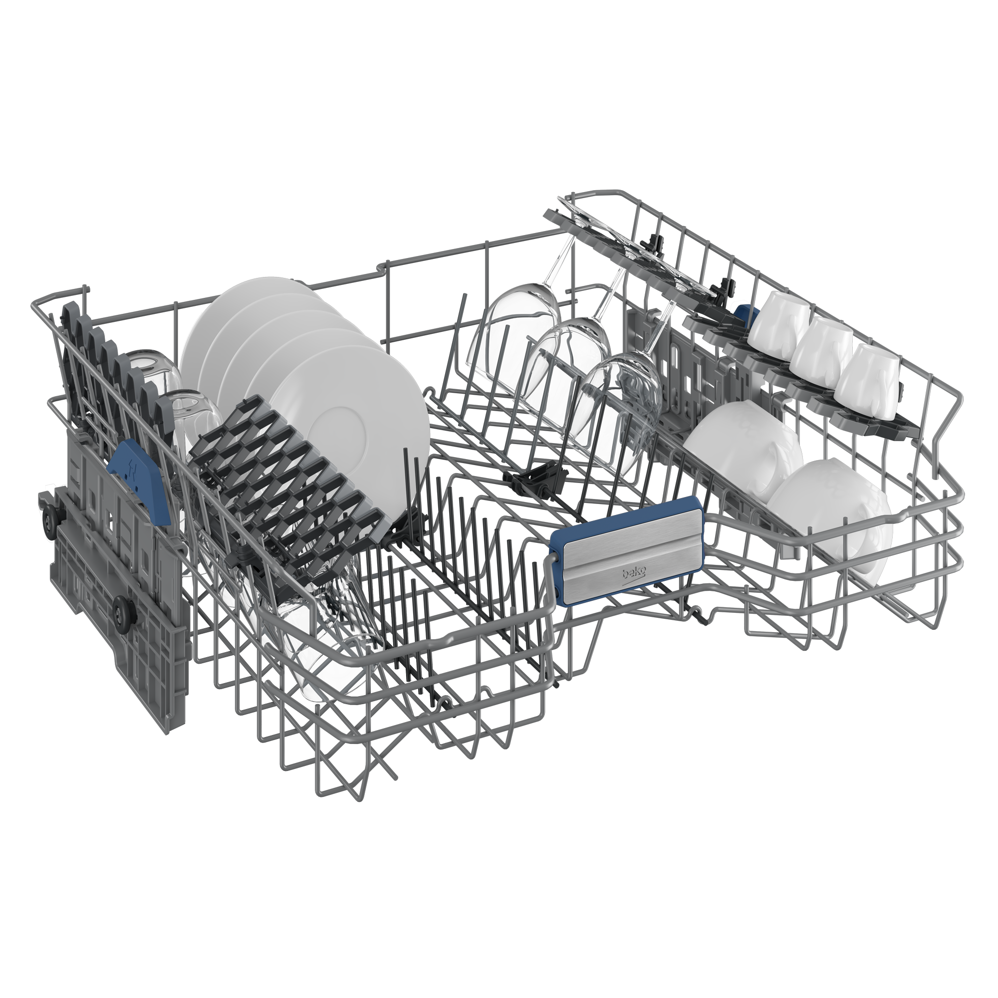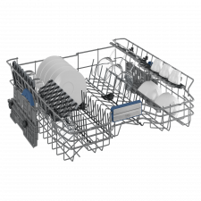 Sellel Beko nõudepesumasinal on täiendav kolmas söögiriistade korv, mis säästab ruumi põhikorvides. Sedasi mahub nõudepesumasinasse 11 nõudekomplekti – mis on kuni 45 cm laiuste kodumasinate hulgas parim tulemus.