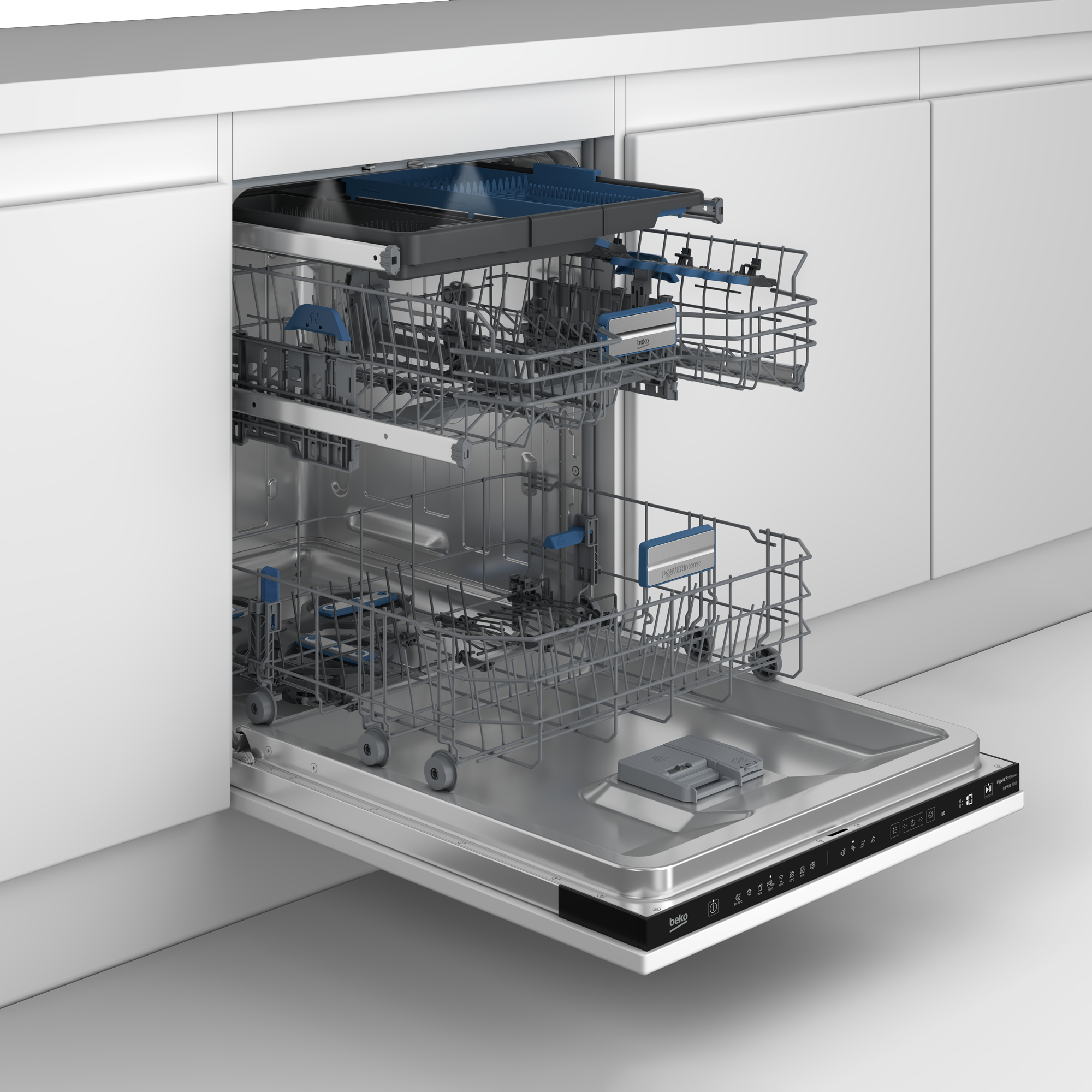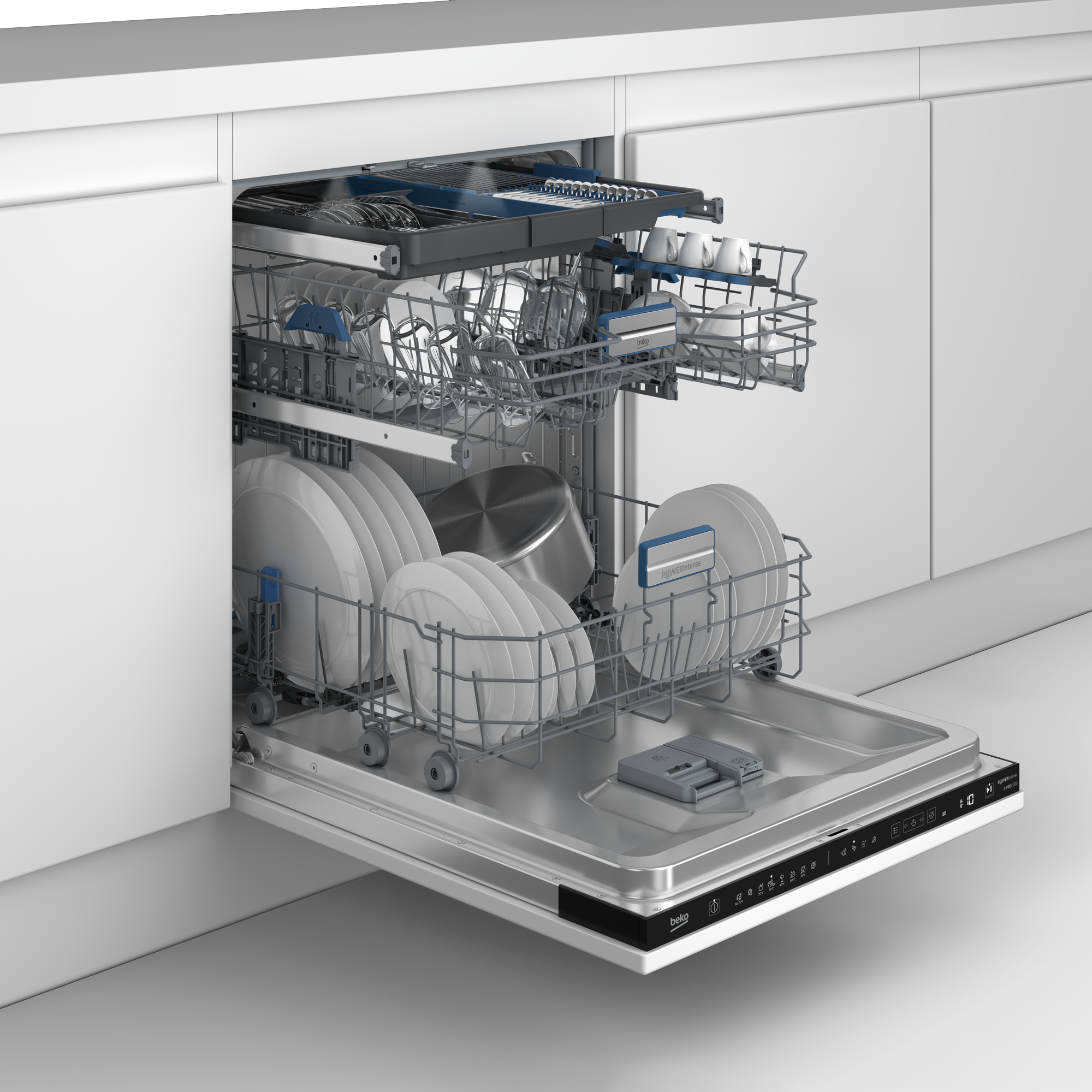 Maksimaalne katvus, kuni viis korda parem puhastustulemus* Uus nõudepesumasinate PowerIntense’i tehnoloogia ületab kõiki ootusi, võrreldes meie varasemate edusammudega. Neli satelliitpihustusvart tagavad kahesuunalise liikumise ja muretu puhastuse iga tsükliga. Tagatud on tõhus veepihustus sedasi, et vesi jõuab alati ka kõige raskemini ligipääsetavatesse kohtadesse. Uuendusliku pihustusvarte süsteemiga saavutatakse tõhus jääkide eemaldamine. PowerIntense’iga on iga tsoon intensiivne tsoon, mis jätab nõud säravalt puhtaks! * Põhineb katsearuandel ja ettevõttesisestel puhastusskoori arvutustel, mis põhinevad rahvusvahelistel standarditel, võrreldes BEKO BBC 181 B võrdlusmudeliga, millel on CornerIntense’i pihustusvarred ja kus oli kasutusel eelseadistatud koormuse tüübiga programm Intensive 70.