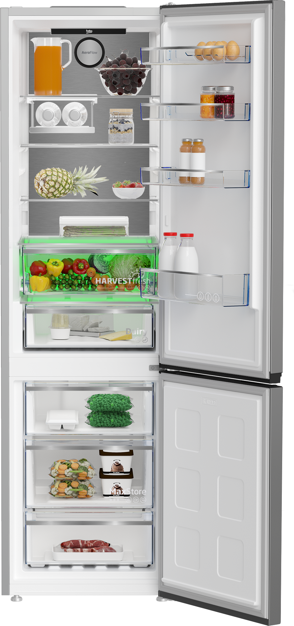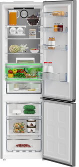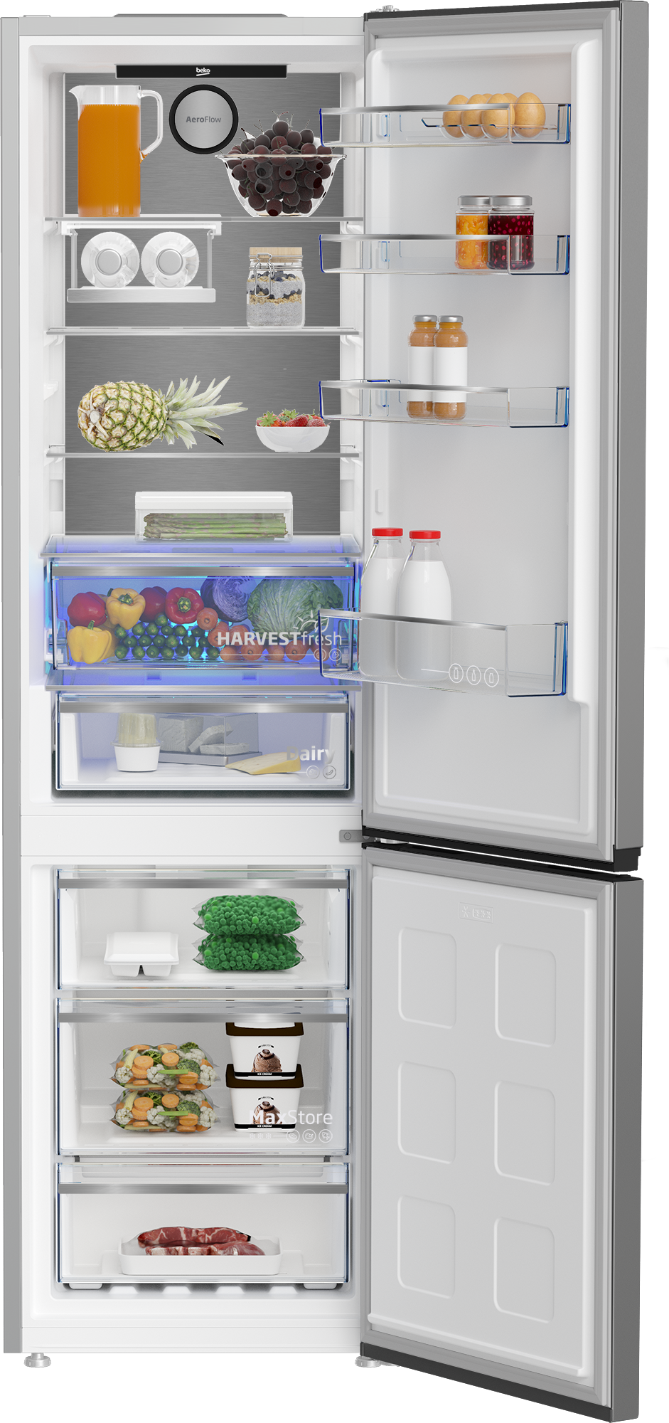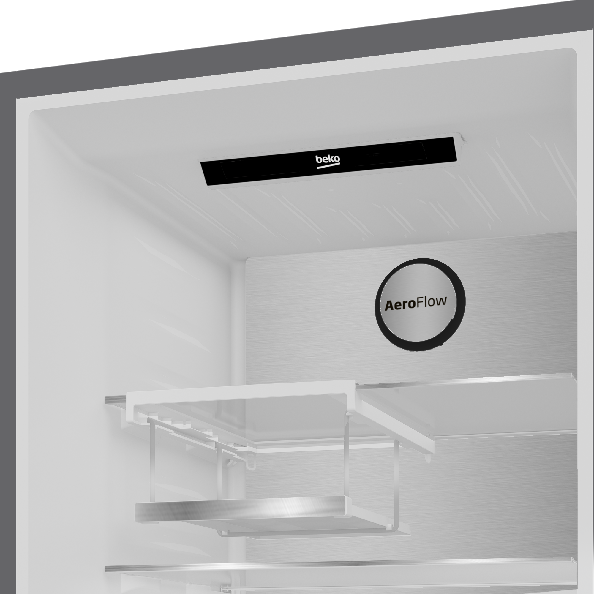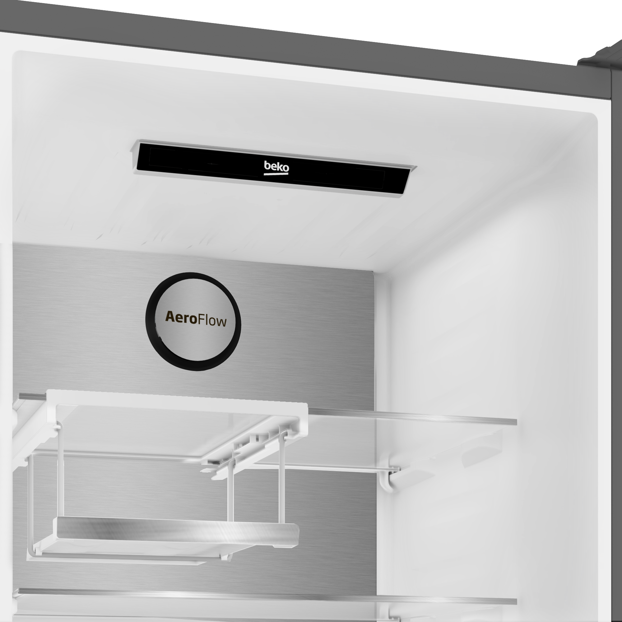 AeroFlow uue põlvkonna kaheosaline NoFrost jahutustehnoloogia kasutab kahte eraldi jahutussüsteemi külmiku ja sügavkülmiku osade jaoks. Igale riiulile võrdse jahutustemperatuuri tagamine säilitab pikemaks ajaks toidu värskuse, vormi, C-vitamiini sisalduse, mahlasuse, elava ja särava välimuse.